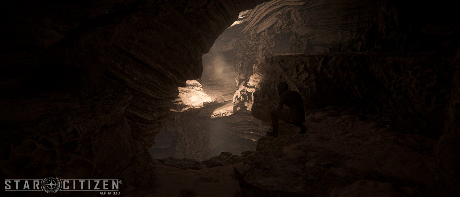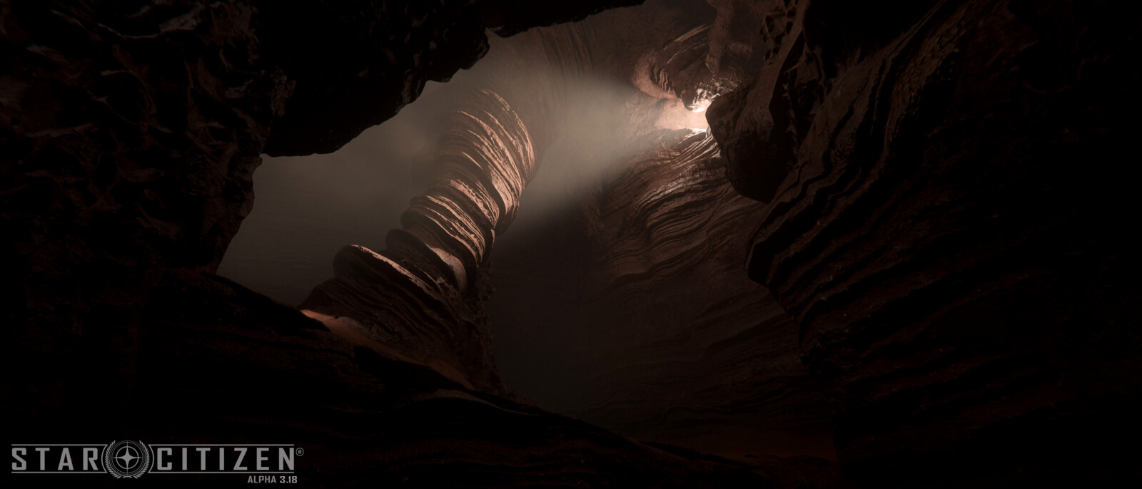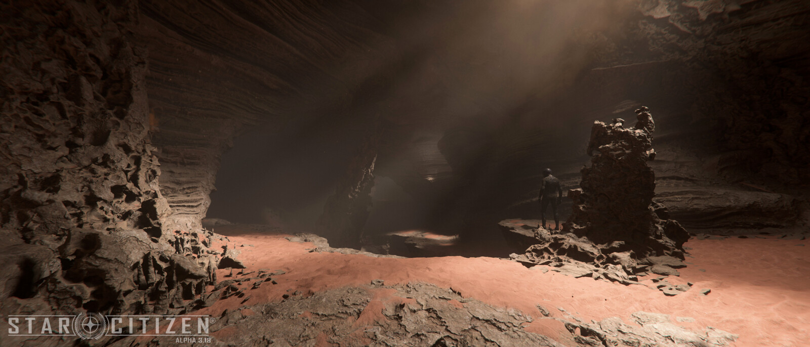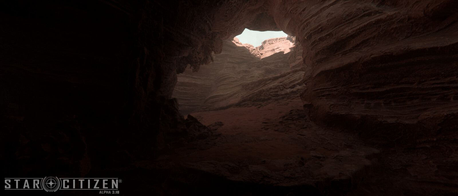 Sand Caves were the first cave archetype I worked on for Star Citizen, introduced in the 3.18 content update. My initial task was to create one of the rooms from whiteboxing and generating cave shells (using our internal cave generator tools), to set dressing, building the cave systems, and placing them on the planets.