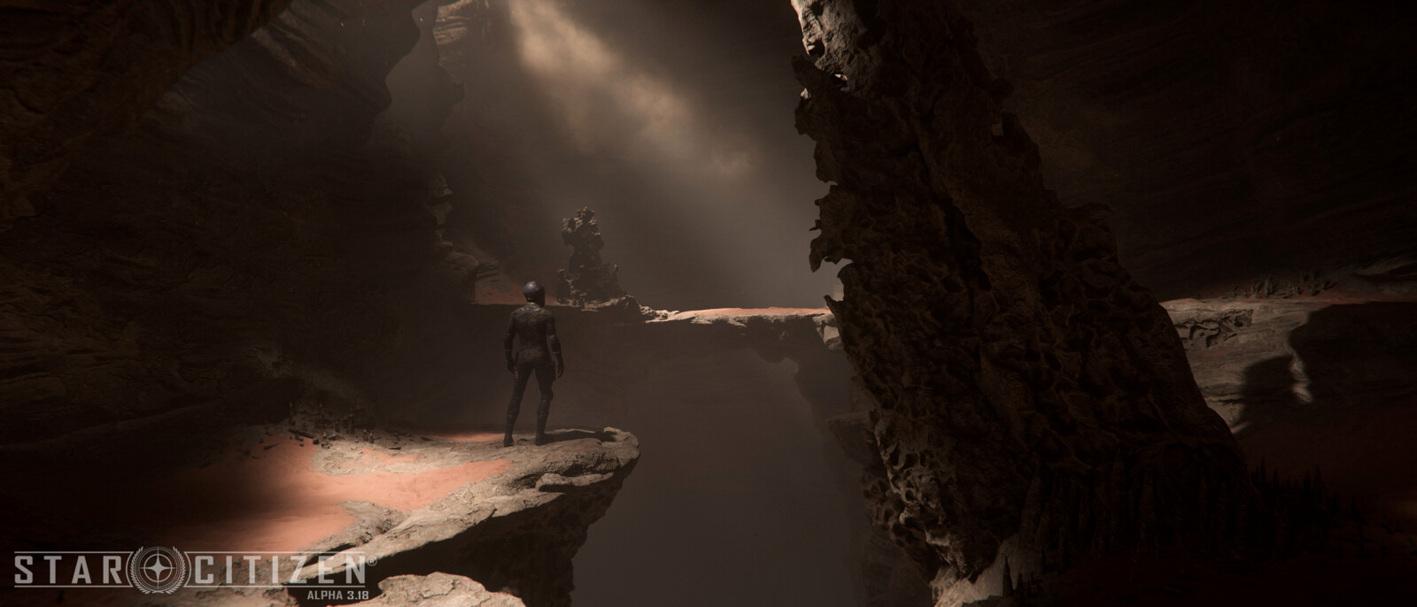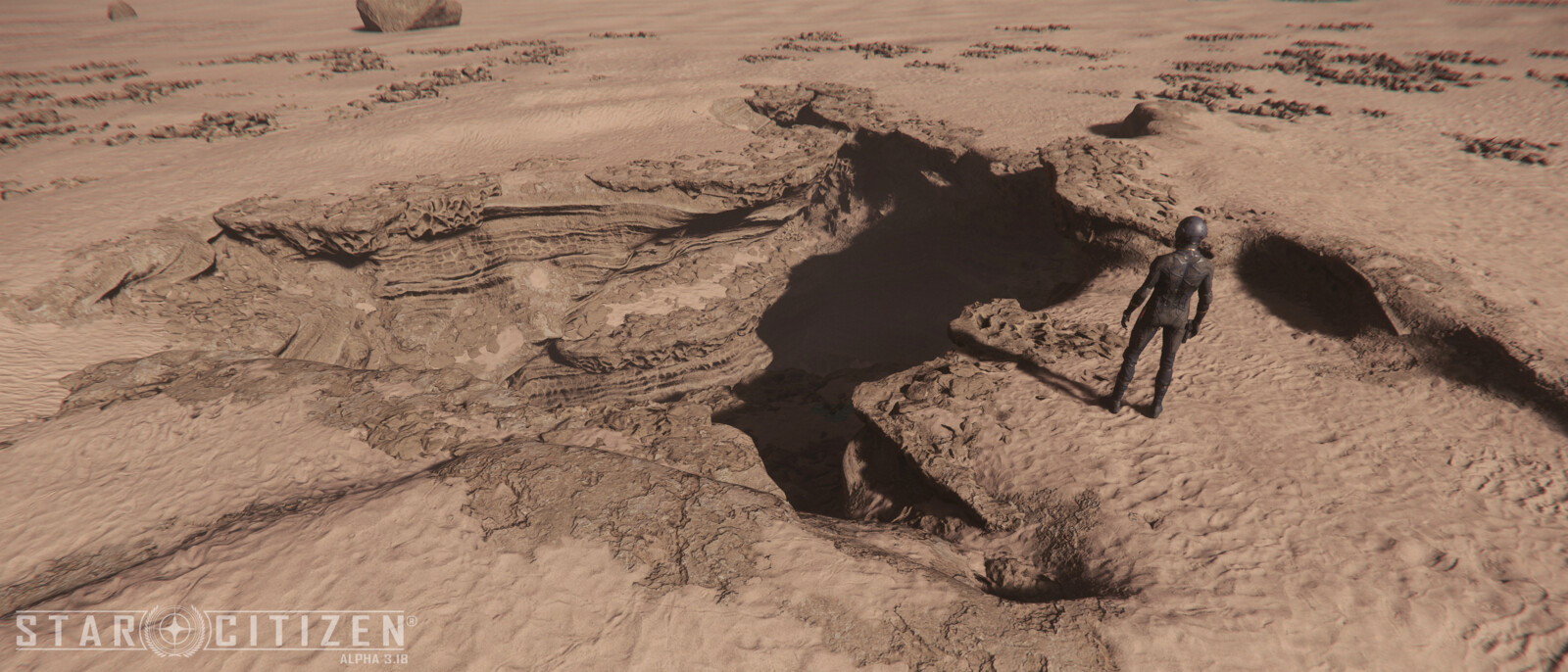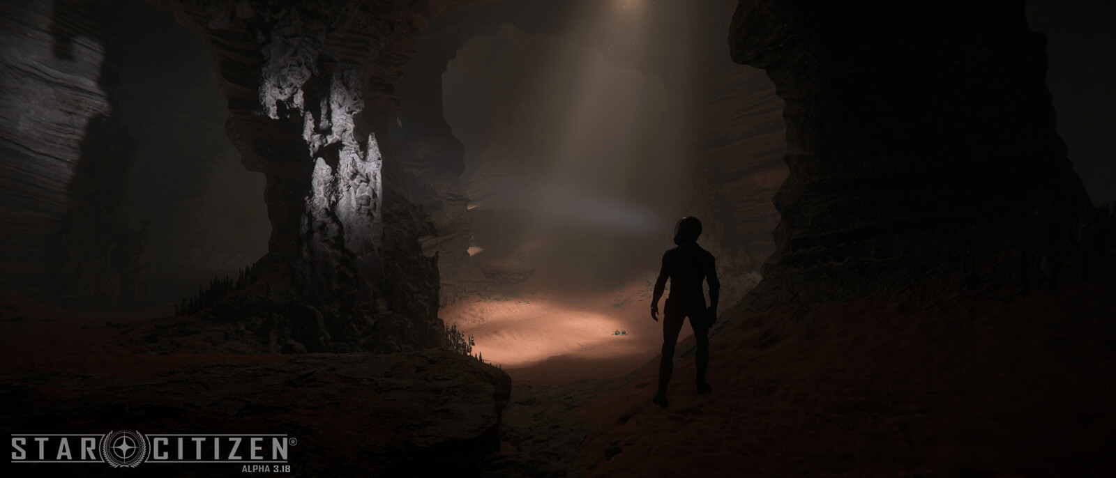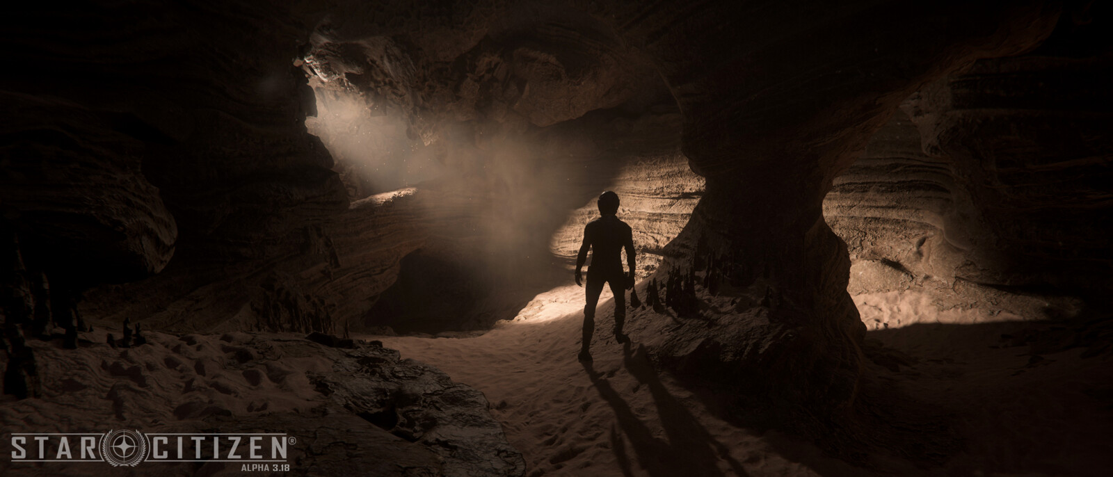 Sand Caves were the first cave archetype I worked on for Star Citizen, introduced in the 3.18 content update. My initial task was to create one of the rooms from whiteboxing and generating cave shells (using our internal cave generator tools), to set dressing, building the cave systems, and placing them on the planets.