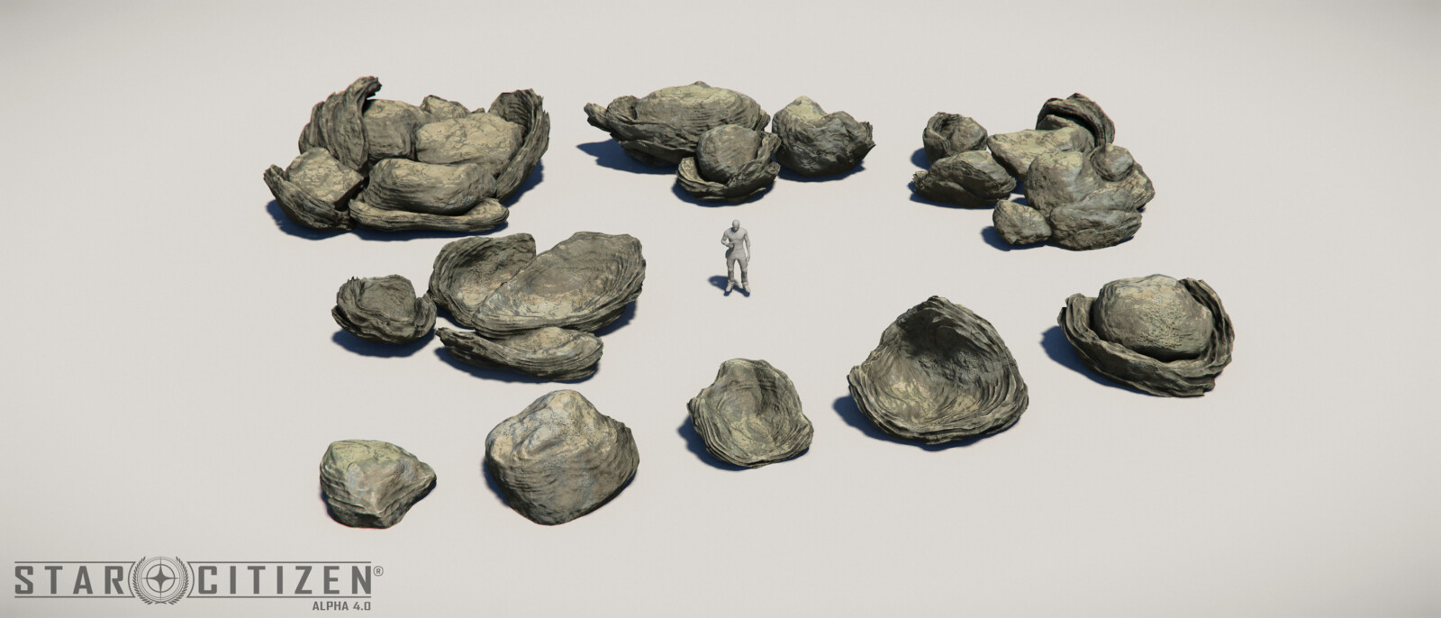 I sculpted the high-poly versions and used them as input for our internal rock generator to create optimized, game-ready assets.