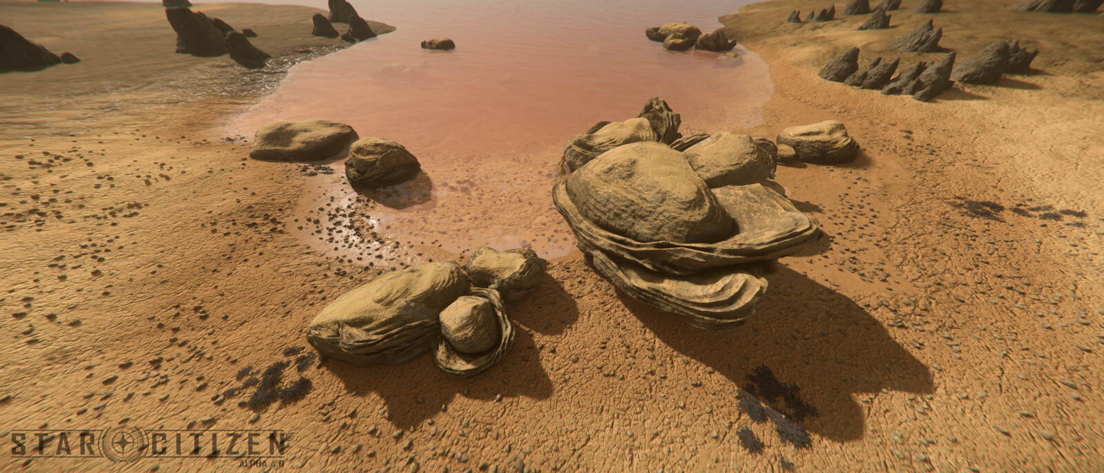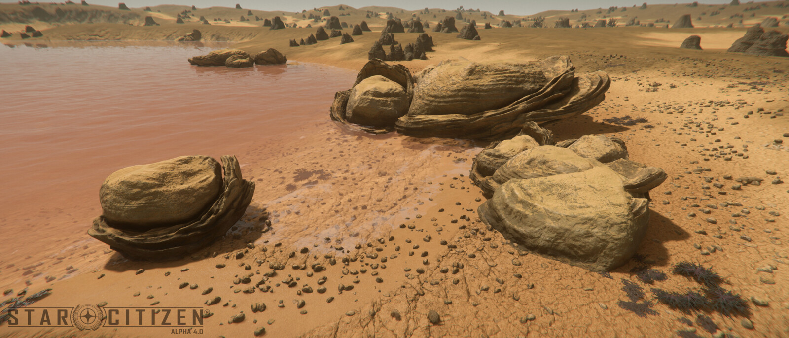 This is a rework of an older version of the Avgo rocks we previously had in the game. I aimed to add more detail and push the alien feel further. Interestingly, these rocks are inspired by a real-world formation often called "alien egg" rocks, found in the Bisti Badlands, New Mexico. They're naturally formed by the erosion of soft mudstones by water, resulting in their unique egg-like shapes.